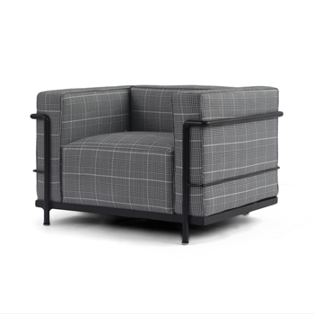 Sillón de tela a cuadros de primera calidad con Cojines rellenos de plumón Marco de acero inoxidable Diseño atemporal para sala de estar, cine en casa